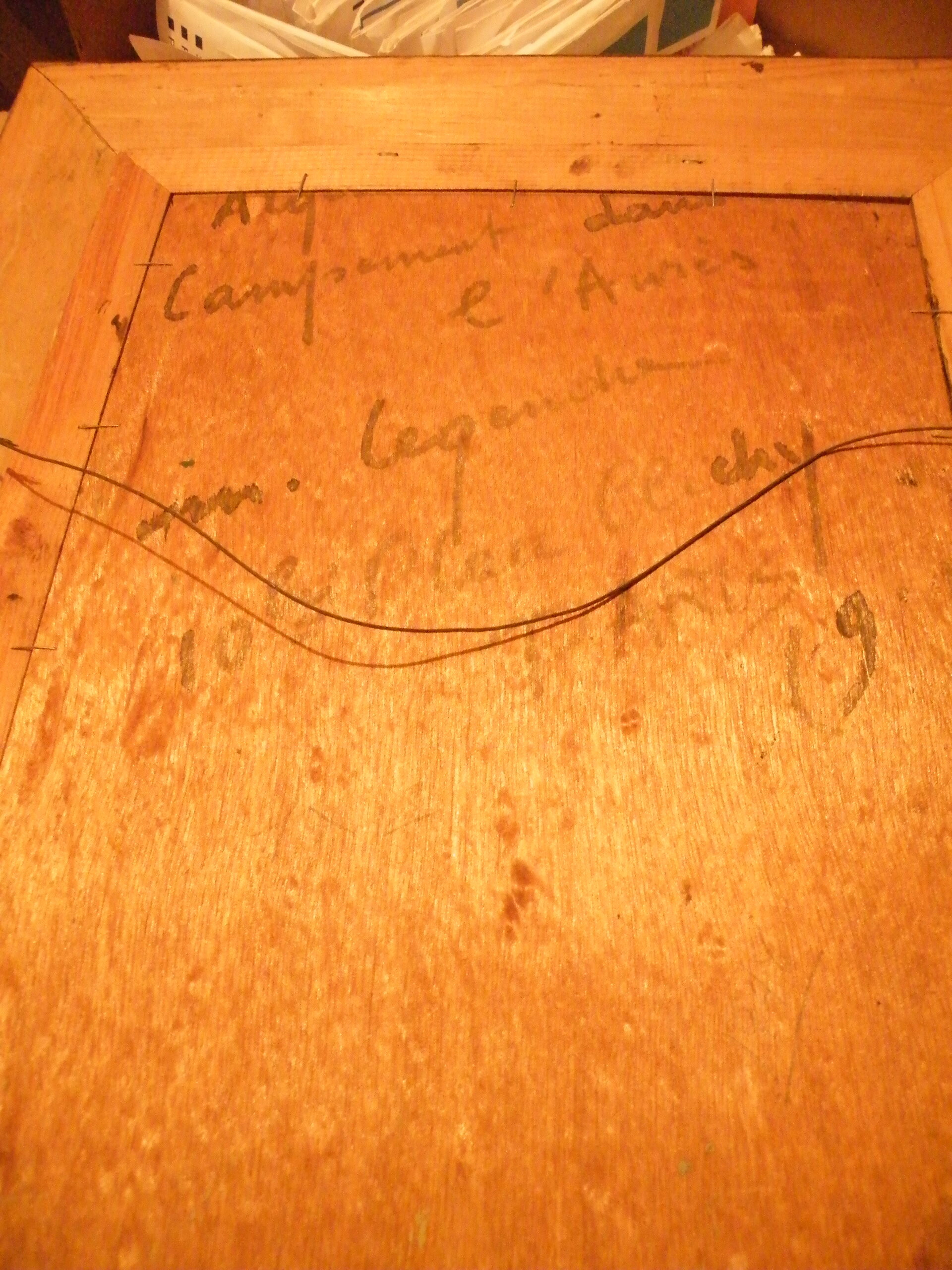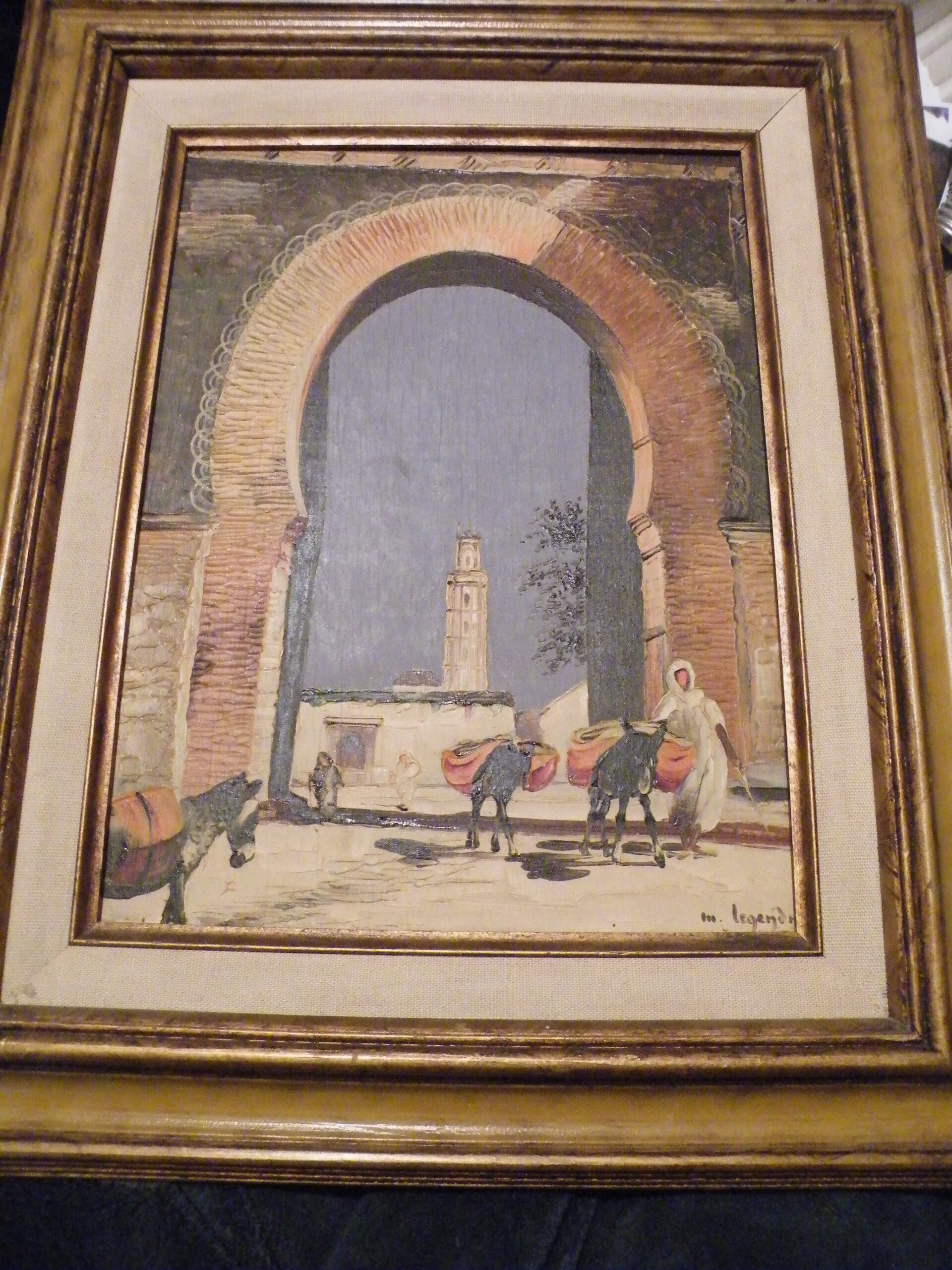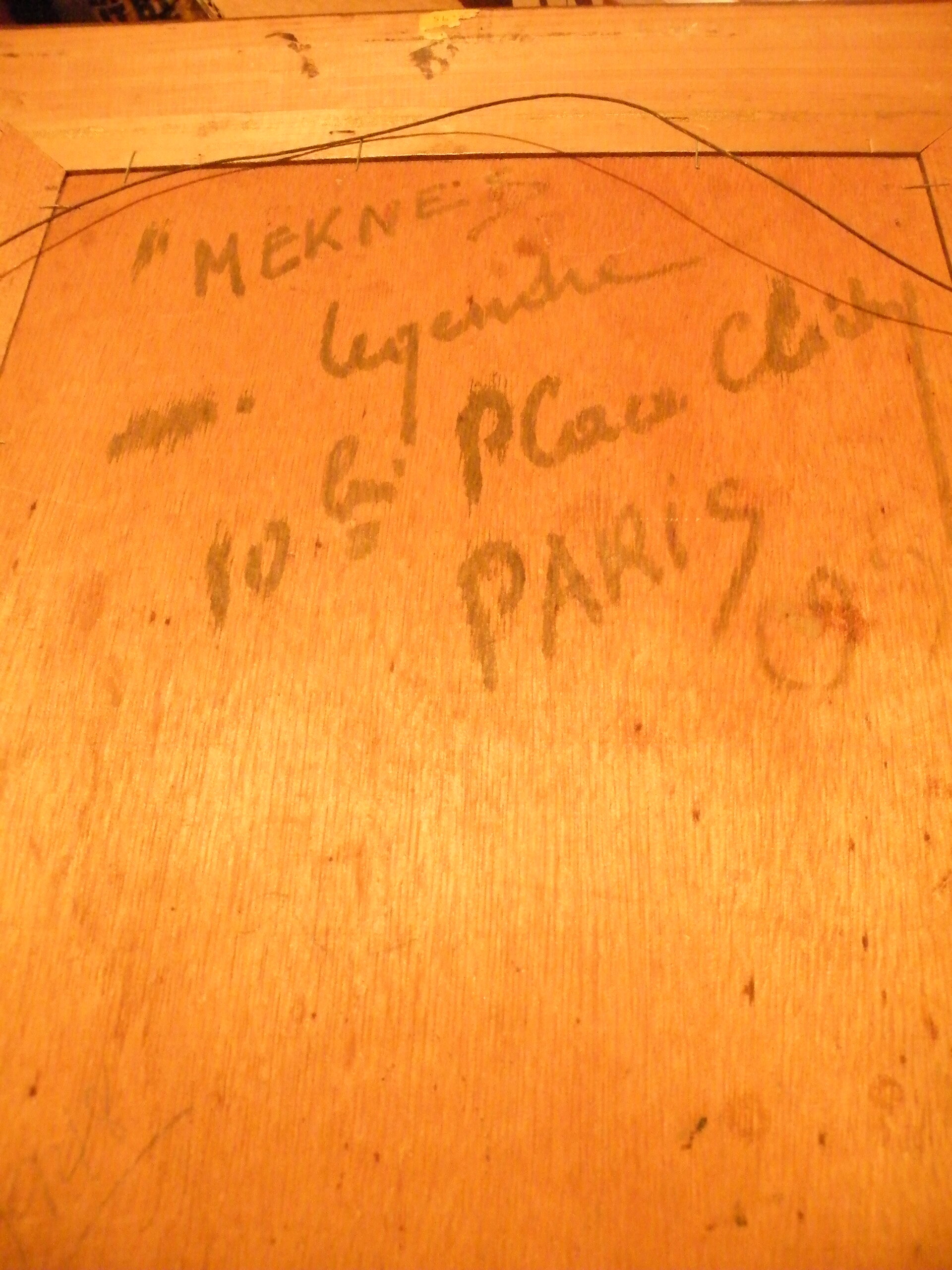 A framed painting on Masonite